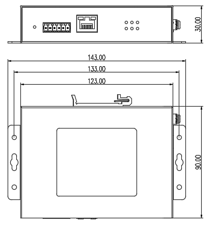 | 物理特性 | 外殼:金屬材質(zhì) 尺寸:123mm×30mm×90mm(W×H×D) 包裝尺寸:236mm×197mm×70mm 散熱方式:自然冷卻,無風扇 防護等級:IP40 安裝方式:壁掛,導軌 |