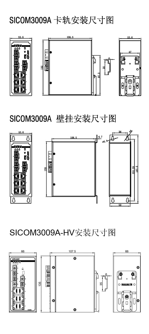 3M6T=3×100Base-FX,多模光口;6×10/100Base-T(X) RJ45電口