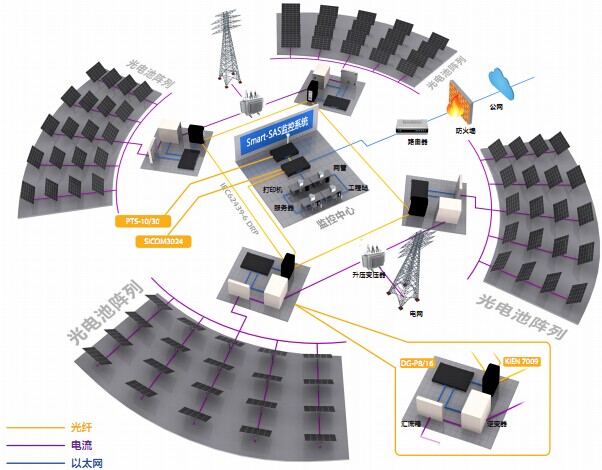 光伏發(fā)電監(jiān)控系統(tǒng)對(duì)光伏電站里電池陣列、 匯流箱、逆變器、交直流配電柜、太陽(yáng)能跟蹤控制系統(tǒng)等設(shè)備進(jìn)行實(shí)時(shí)監(jiān)測(cè)控制,從而掌握電站運(yùn)行情況,確保太陽(yáng)能光伏發(fā)電系統(tǒng)完全可靠和穩(wěn)定運(yùn)行。