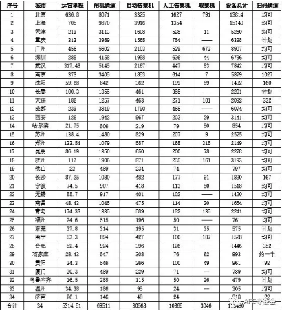 一、軌道交通AFC設(shè)備應(yīng)用情況統(tǒng)計: