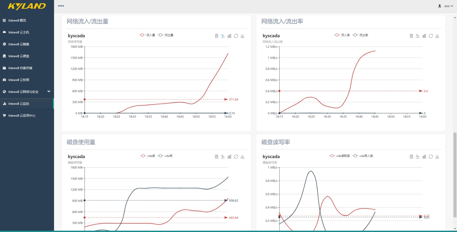 | 云監(jiān)控管理 | 支持對云主機(jī)CPU、內(nèi)存、磁盤、網(wǎng)絡(luò)的監(jiān)控。 支持對應(yīng)用資源的監(jiān)控及動態(tài)擴(kuò)展 支持對應(yīng)用特有的業(yè)務(wù)進(jìn)行監(jiān)控(應(yīng)用自定義) 支持對應(yīng)用的編排:單個應(yīng)用啟、停和多個應(yīng)用的編排 ![]() ![]() |